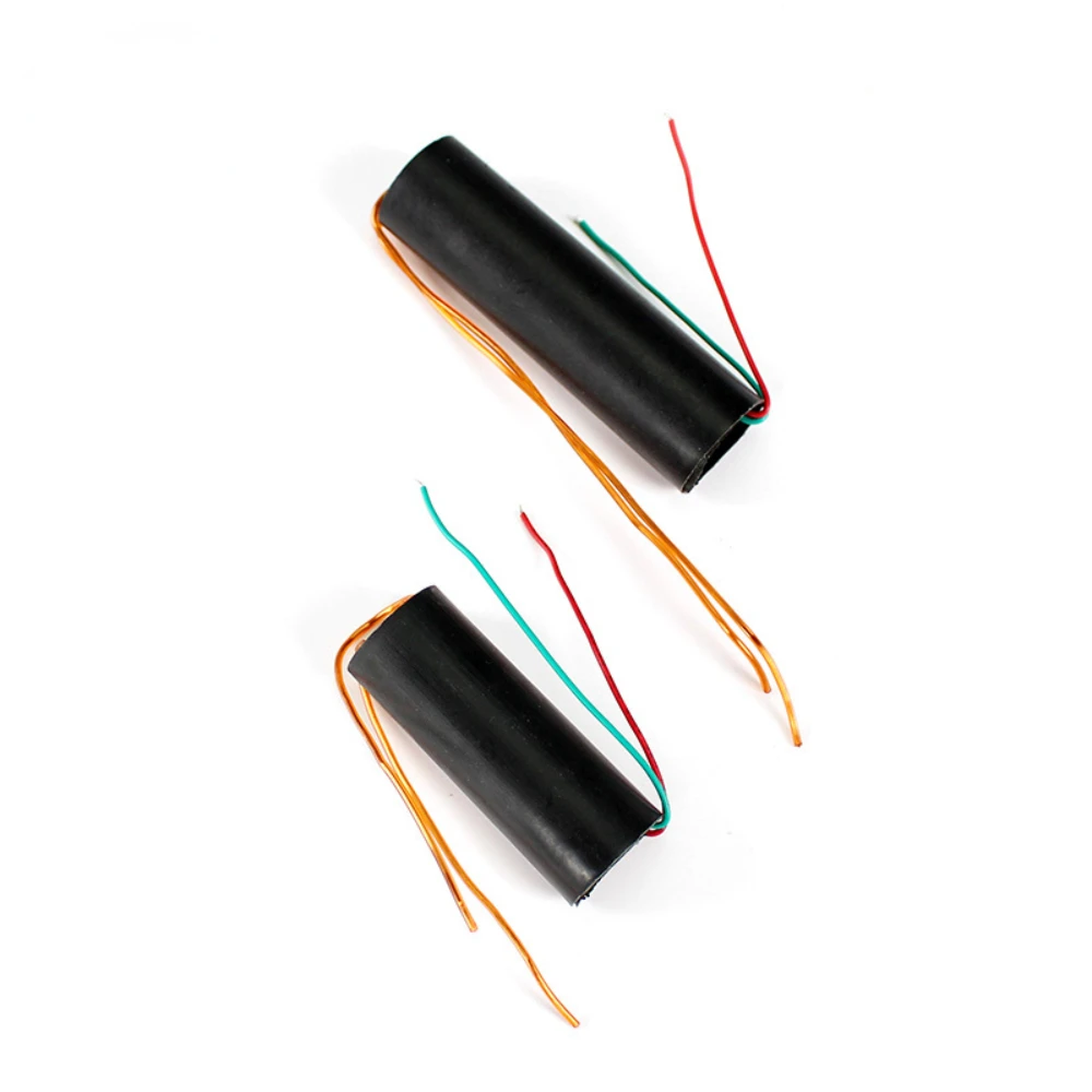 The module is divided into input end and output end. The red and green lines are the input end, red positive and green negative, and the output end is two high-voltage lines of the same color. When the input end is connected to the battery, a high-voltage arc can be generated.