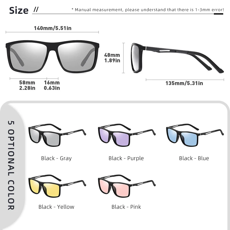 كن أول من يقيم “LIOUMO Brand Square Photochromic Polarized Sunglasses Men Women Night Vision Glasses For Driving Trendy Shades Chameleon Eyewear”